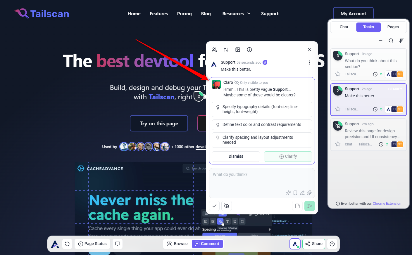 When a vague comment is detected, Claro evaluates it in real time and takes two key actions: