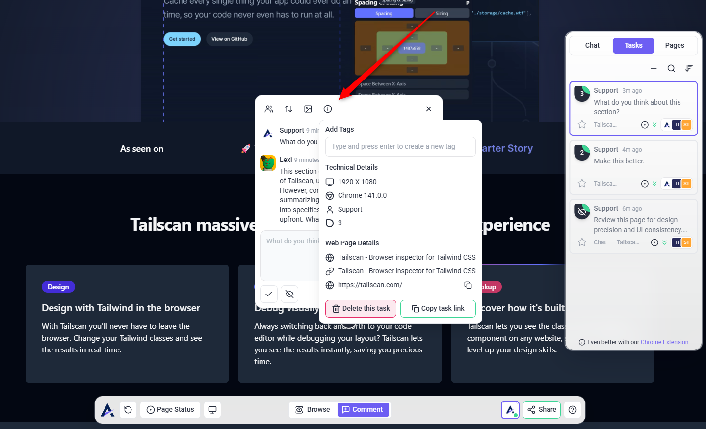 Once the comment is converted, the resulting task is visually anchored to the exact element on the canvas. This ensures clarity on where the issue is and keeps the conversation focused.