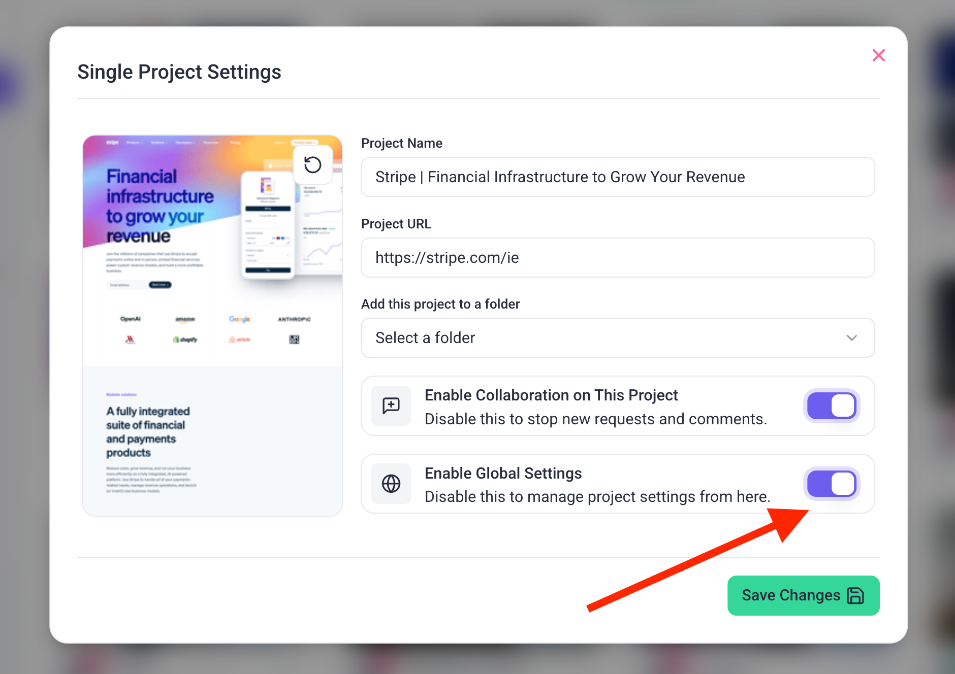 Modal Shows Project Settings if Global Settings Are Turned Off